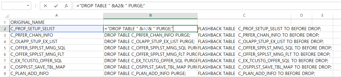 복구를 위한 쿼리 생성은 Excel 을 이용하여 생성하는것이 수월합니다.