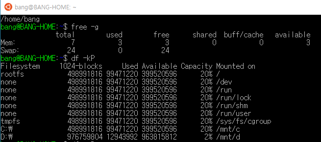 이걸 WSL (Linux용 Windows 하위 시스템) 이라고 합니다.