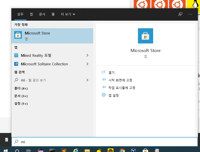 1. 시작화면에서 Microsoft Store 검색후 들어감