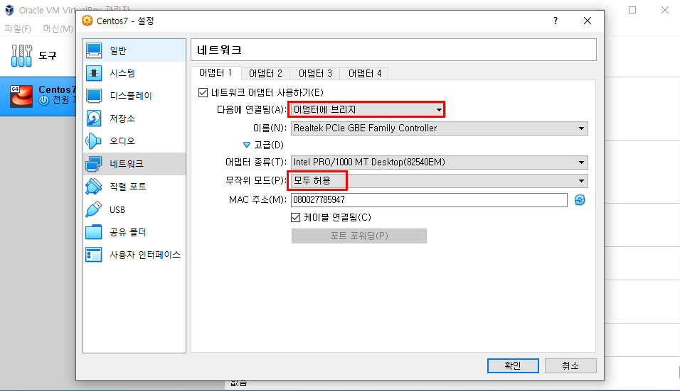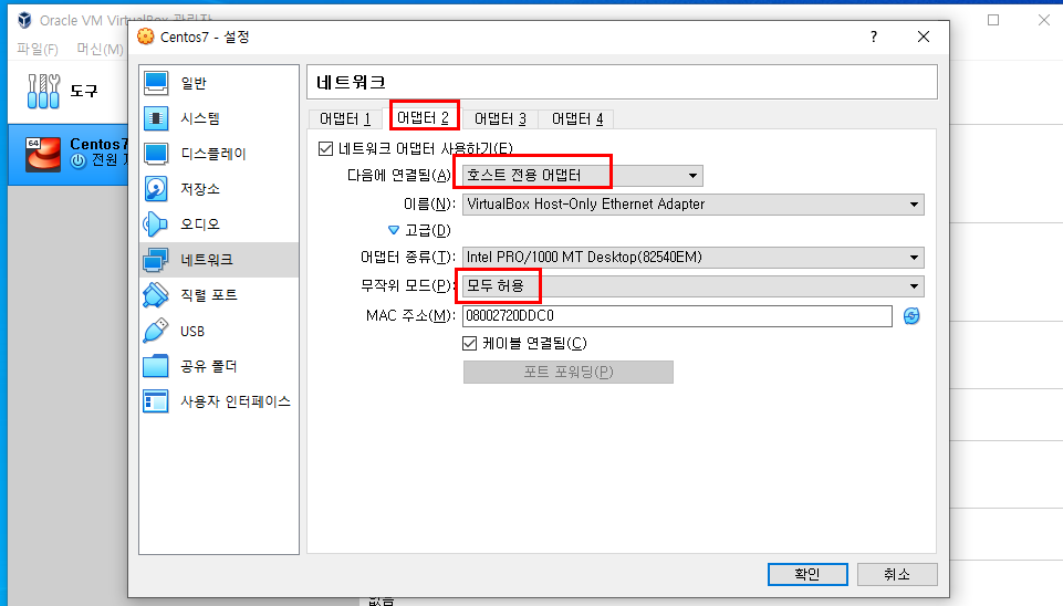 해당 리눅스를 기동하고 윈도우에서 접속하기위해서는