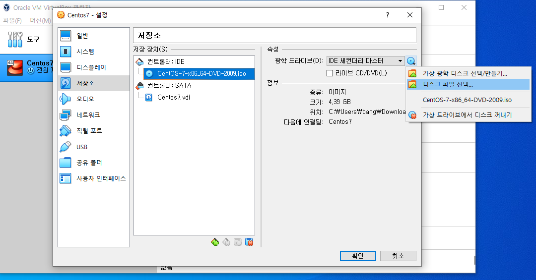 iso파일만 그냥 설정에서 넣어주면 되네요!
