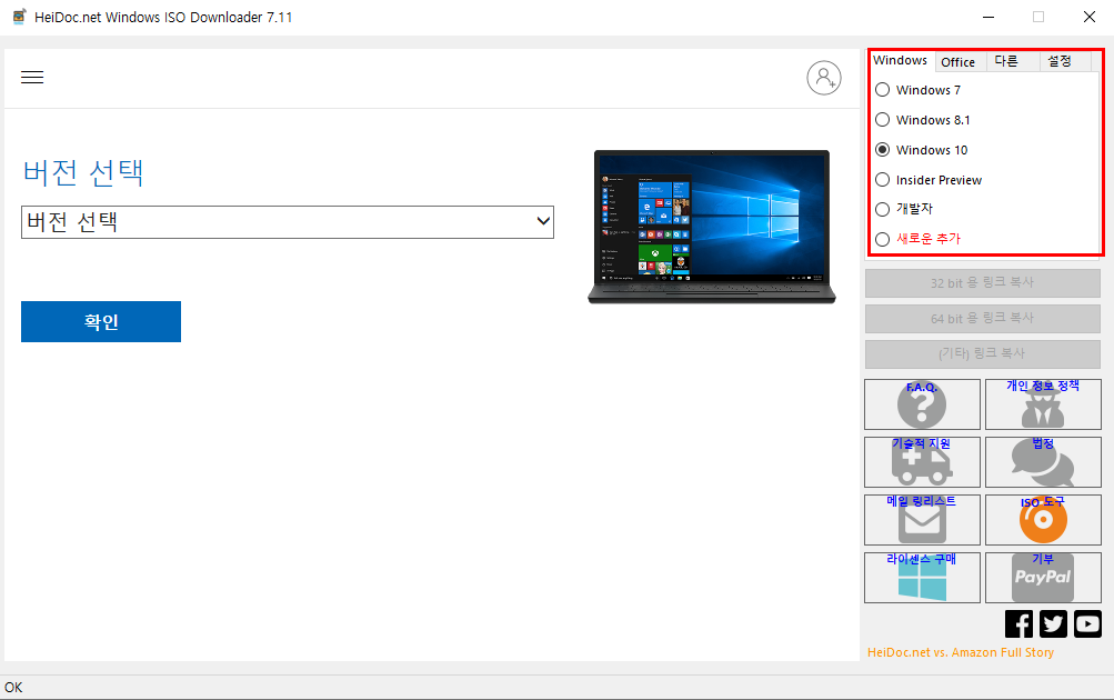 위 파일을 통해 모든 WINDOW, Office iso 파일을 다운받을수 있습니다.