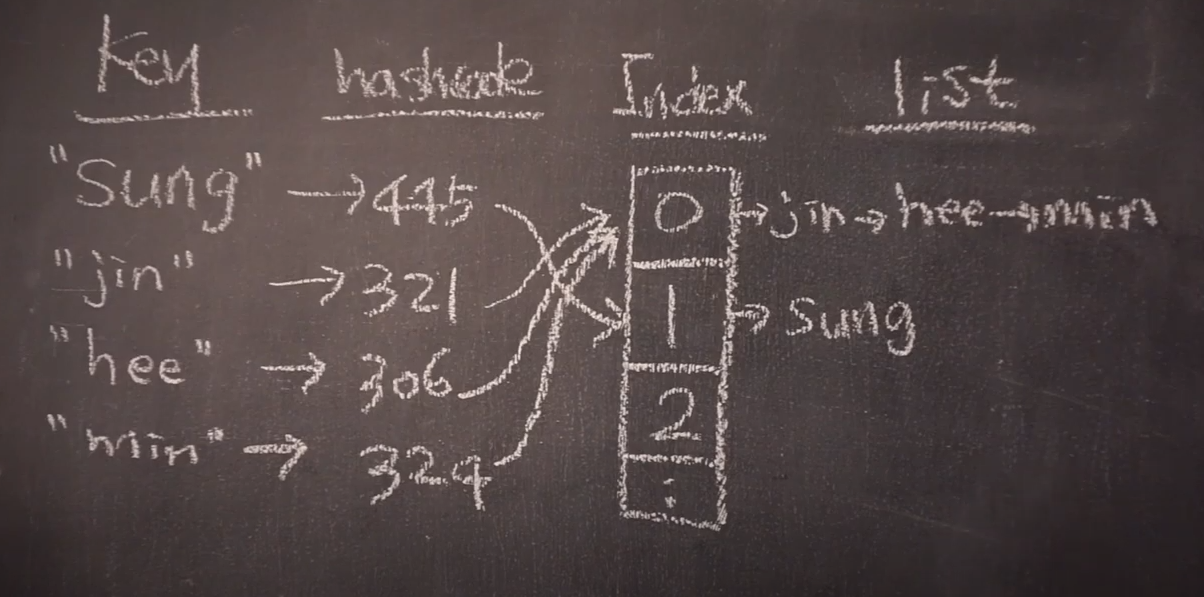 Index를 구하는 과정에서 똑같은 공간을 가리켜 연결 저장되는 경우도있다.