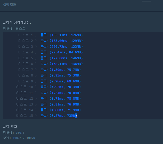 + 마지막 반환시, 0,0,0,0... 과 같이 0 값들로만 들어 왔을 때, 0으로 반환 (TestCase 11 해당)