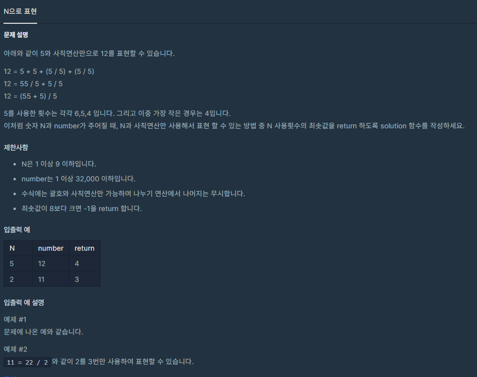 코딩테스트 연습 - N으로 표현