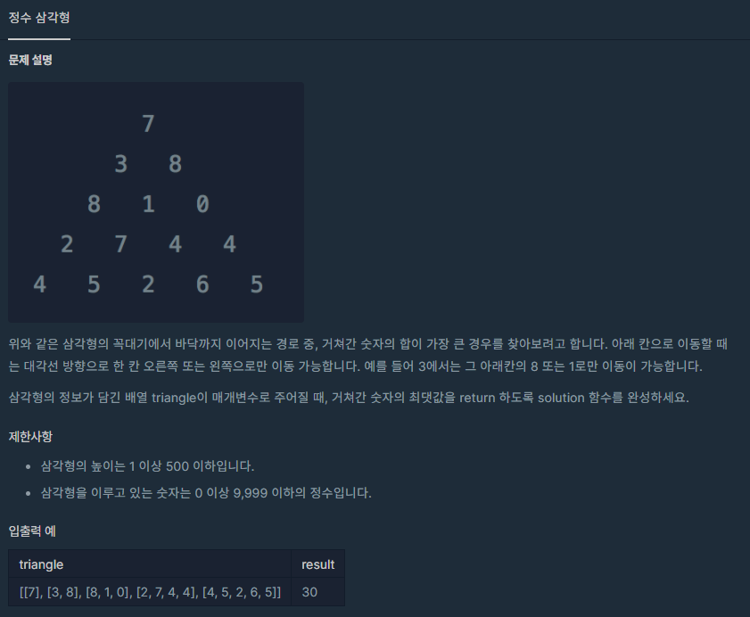 코딩테스트 연습 - 정수 삼각형
