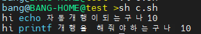 printf "hi printf 개행을 해줘야하는구나 %d\n" $a