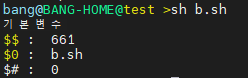 8. 기본변수로 $0은 실행 파일명을 가지며, $# 파라미터 갯수를 가지며, $$ 프로세스ID를 나타낸다.