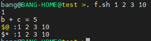 9. 실행시 매개변수는 들어온 순서대로 $1 ~ $999 까지 사용가능하며, $* , $@을 통해 한번에 받을수 있다.