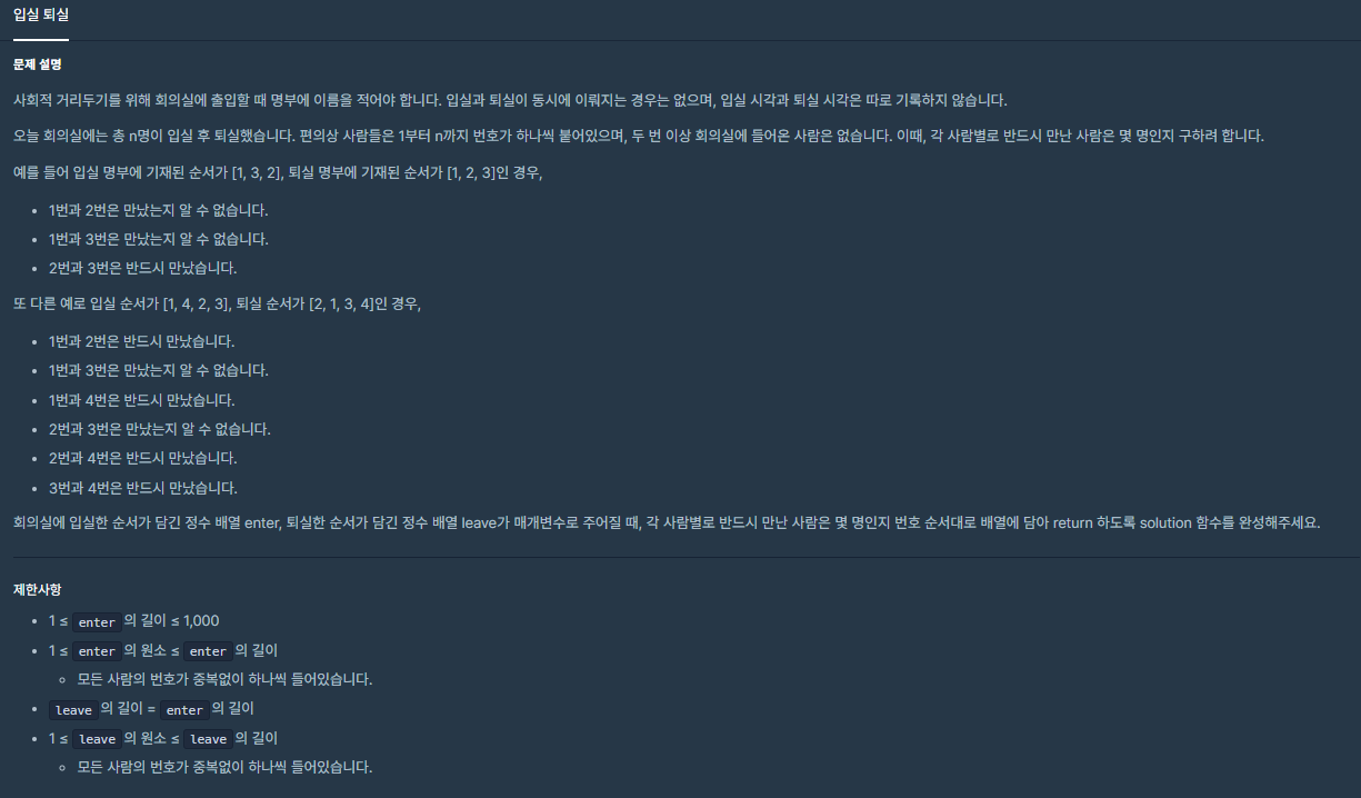 사회적 거리두기를 위해 회의실에 출입할 때 명부에 이름을 적어야 합니다. 입실과 퇴실이 동시에 이뤄지는 경우는 없으며, 입실 시각과 퇴실 시각은 따로 기록하지 않습니다. 오늘 회의실에는