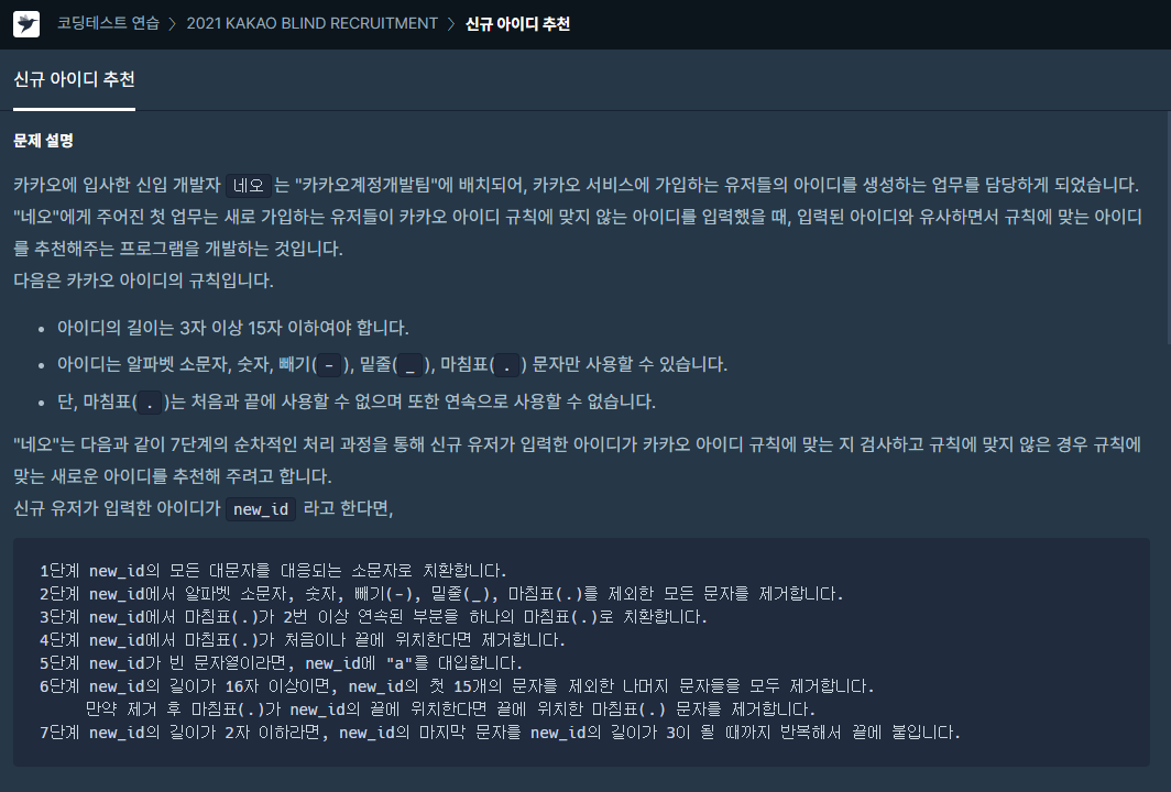 코딩테스트 연습 - 신규 아이디 추천