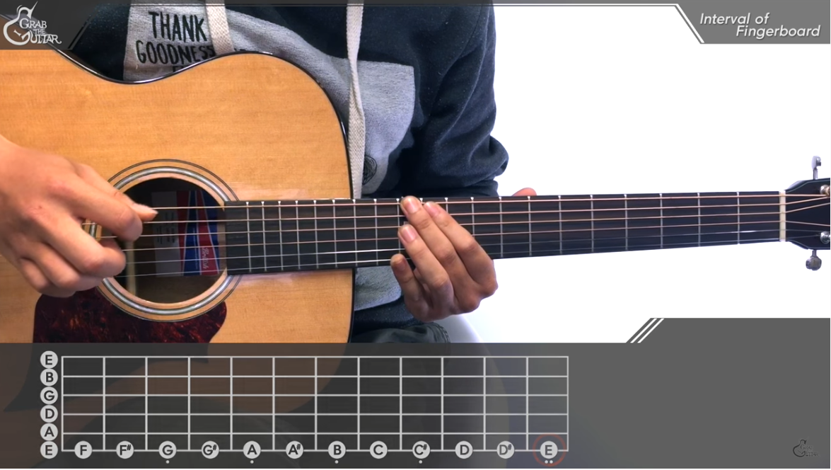 기타는 누르는 프랫위치가 한칸 올라갈때마다 반음씩 올라간다.