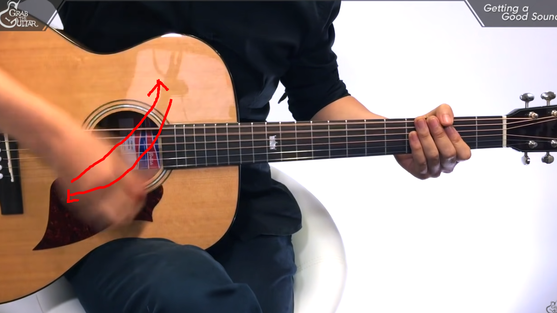 2) 너무 약하게 치거나, 피크를 너무 비스듬이 잡게되면, 줄을 긁는 소리가 나서 좋지 않다.