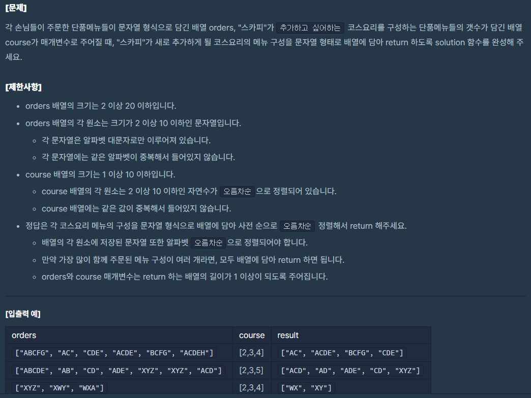 https://programmers.co.kr/learn/courses/30/lessons/72411