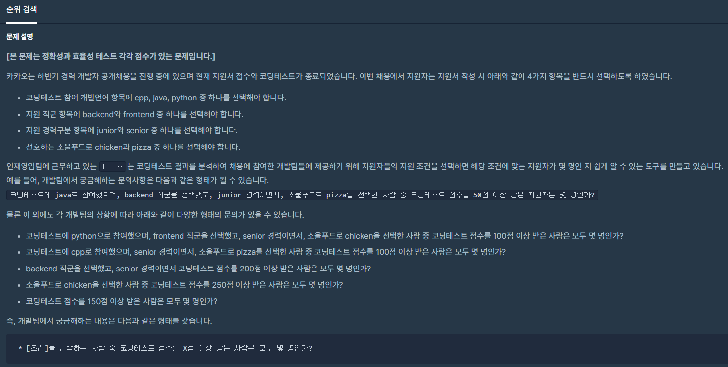 코딩테스트 연습 - 순위 검색