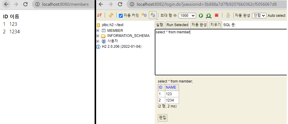 http://localhost:8082/ 로 접속