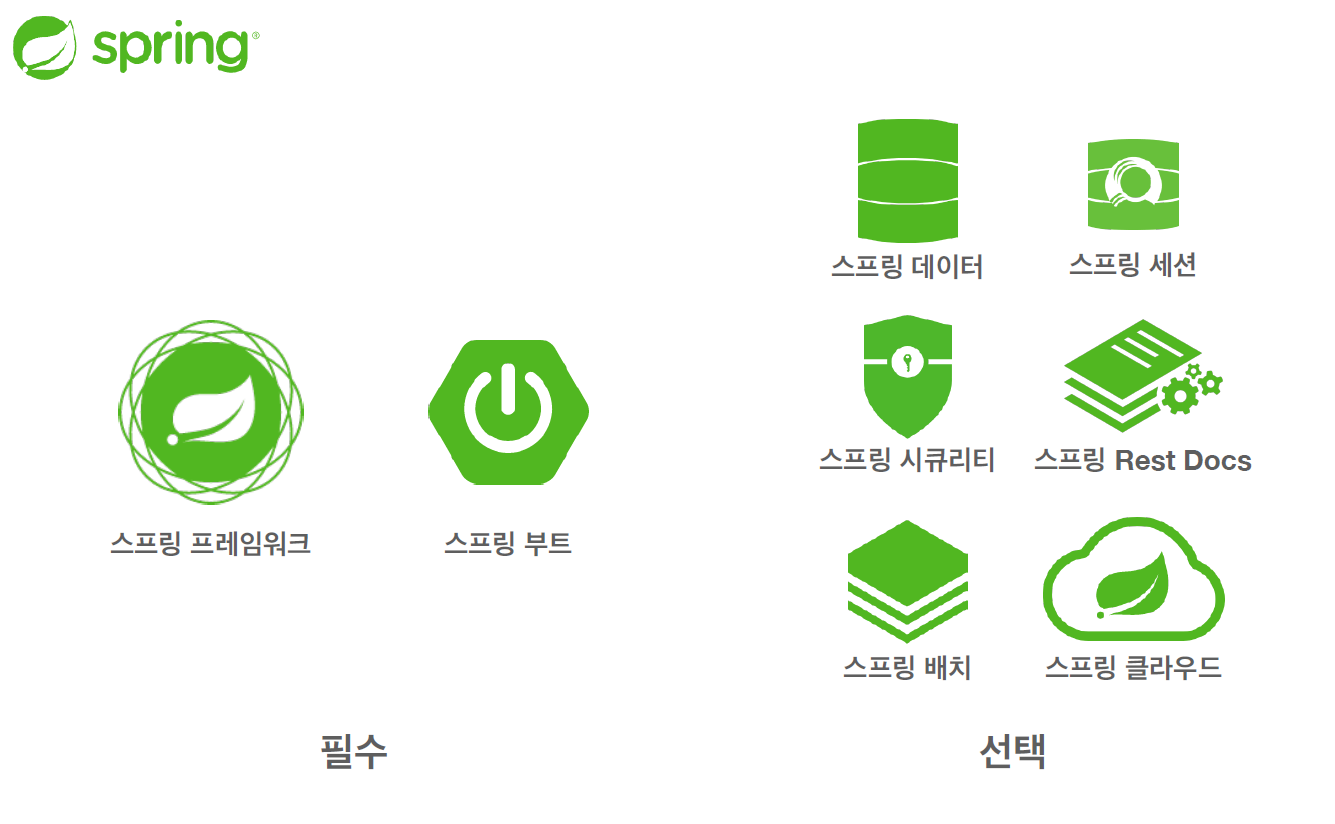 추가적으로 Spring JPA, Spring Data(DB연동기술), Security(보안), Session(세션기술), Rest Docs(API 문서도구), Batch(배치수행), Cloud 등이 있다.