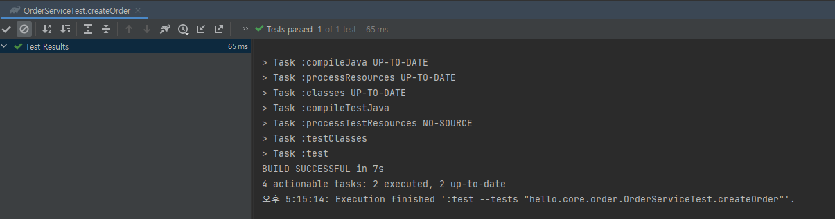Order order = orderService.createOrder(memberId, "item1", 10000);
