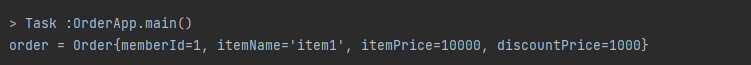 Order 객체는 주문자ID, 상품명, 상품가격, 할인가격을 가지도록 만들어주었다. (ITEM상품 객체를 안만드신게 찜찜..)