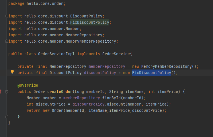 // private final DiscountPolicy discountPolicy = new FixDiscountPolicy();