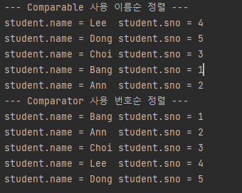 System.out.println("--- Comparable 사용 이름순 정렬 ---");