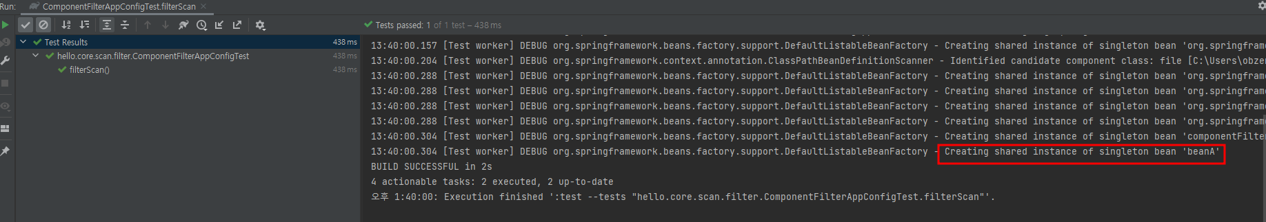 예시코드) excludeFilter에서 ASSIGNABLE_TYPE 을 통해 BeanA를 제외시키는 코드 ↓