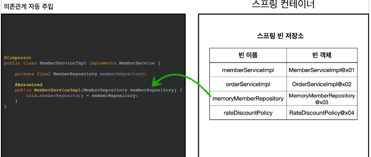 @AutoWired를 명시하면 등록된 스프링 컨테이너에서 빈객체를 찾아서 주입해준다.