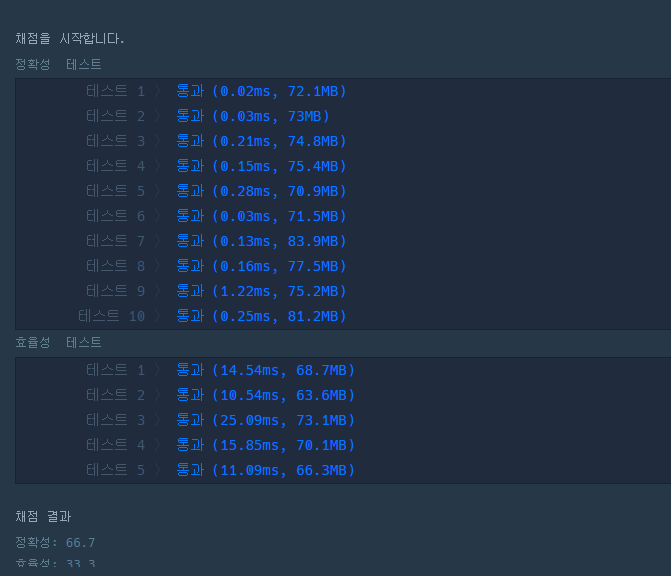테스트 10 〉 통과 (1.64ms, 68.9MB)
