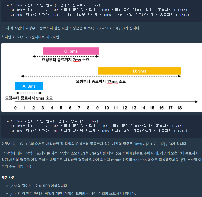 public static int solution(int[][] jobs) { // 요청시간, 수행시간