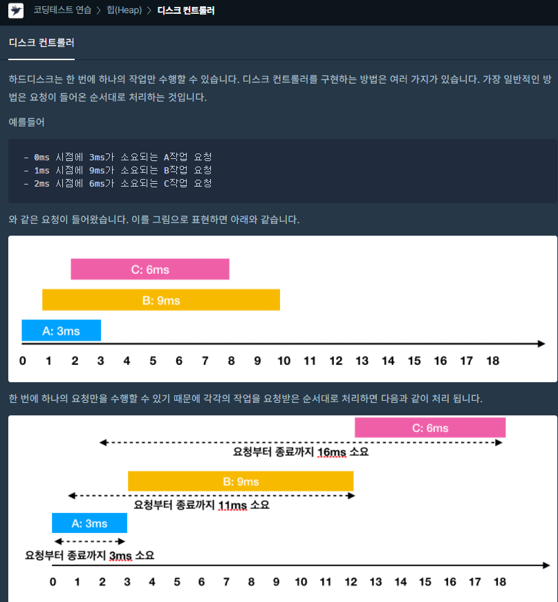 코딩테스트 연습 - 디스크 컨트롤러