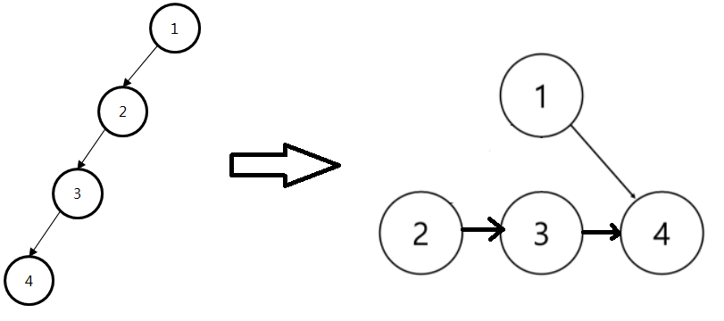 1에 연결된 2를 무시하고 4로 바로 연결시켜버려도 무방하다.
