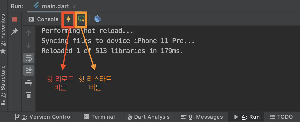 핫 리로드, 핫 리스타트는 개발중인 프로젝트 앱을 실행하고 변경되는 사항을 빠르게 반영하기 위해 지원하는 기능이다.