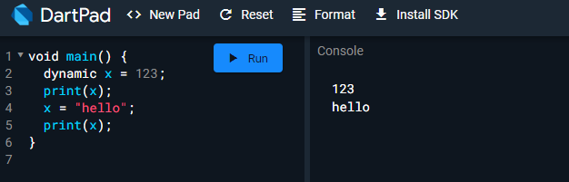 2. Dart Dynamic (== JS var)