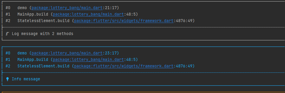 logger.d('Log message with 2 methods');