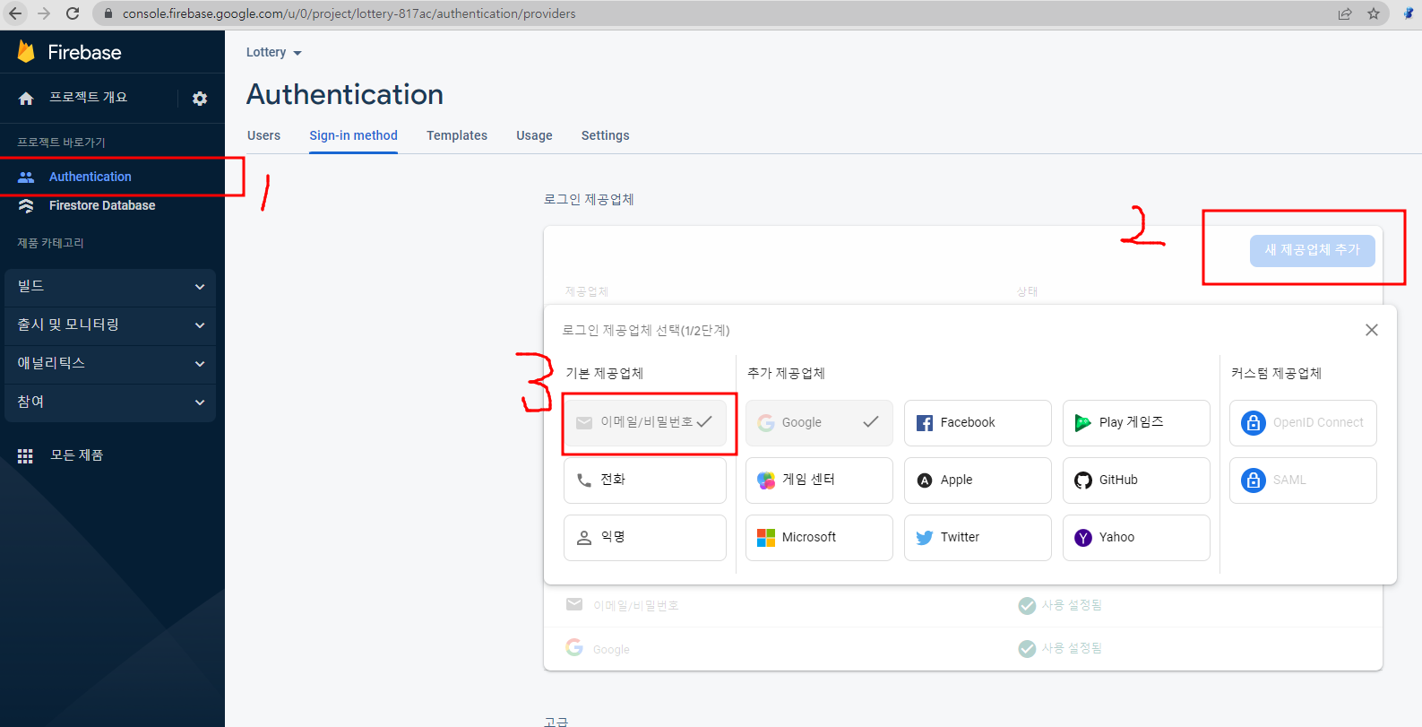콘솔 사이트에서 auth페이지에 이메일 로그인 사용을 설정해준다.