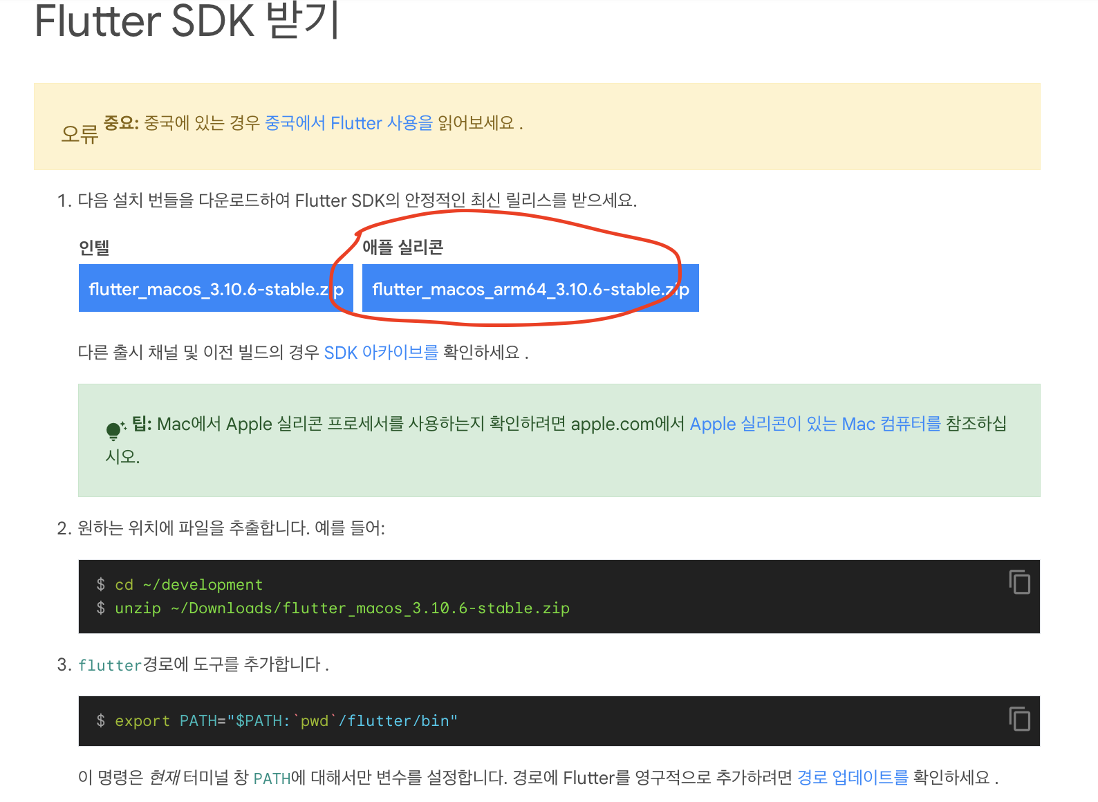4) flutter 설치