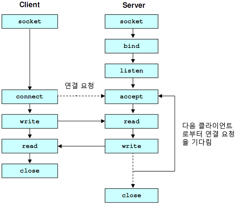 - 1:1(Unicast) 통신, 소켓통신(가상회선방식)