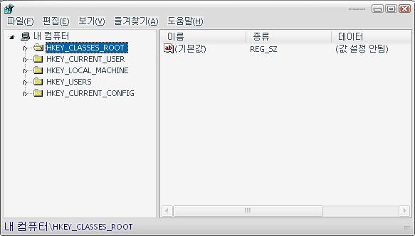 파일의 각 확장자에 대한 연결 정보, OLE 데이터에 대한 정보, 각 파일과 프로그램간의 연결에 대한 정보가 들어있는 부분이다. 따라서 응용프로그램이 많이 설치되어 있다면 엄청난 양의 하위키를 확인할 수 있을 것이다.